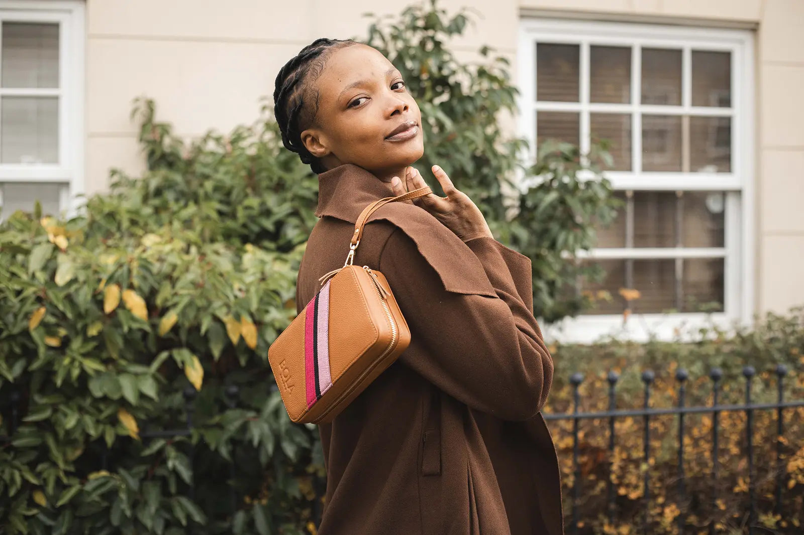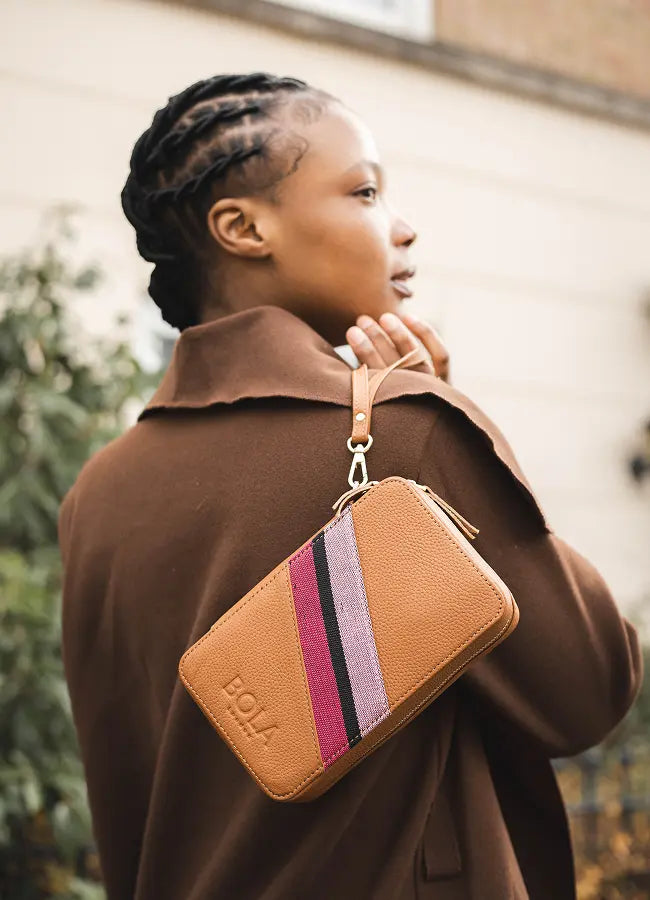 Before our journey into leather, we created just three fabric tech organisers ,Beth (purple), Jawu (brown), and Fila (pink and brown) each a tribute to our beginnings. Crafted from àṣọ òkè, they capture the essence of Bola London’s vision: blending heritage and modernity, strength and creativity. Only three exist, timeless keepsakes that mark where our story began.