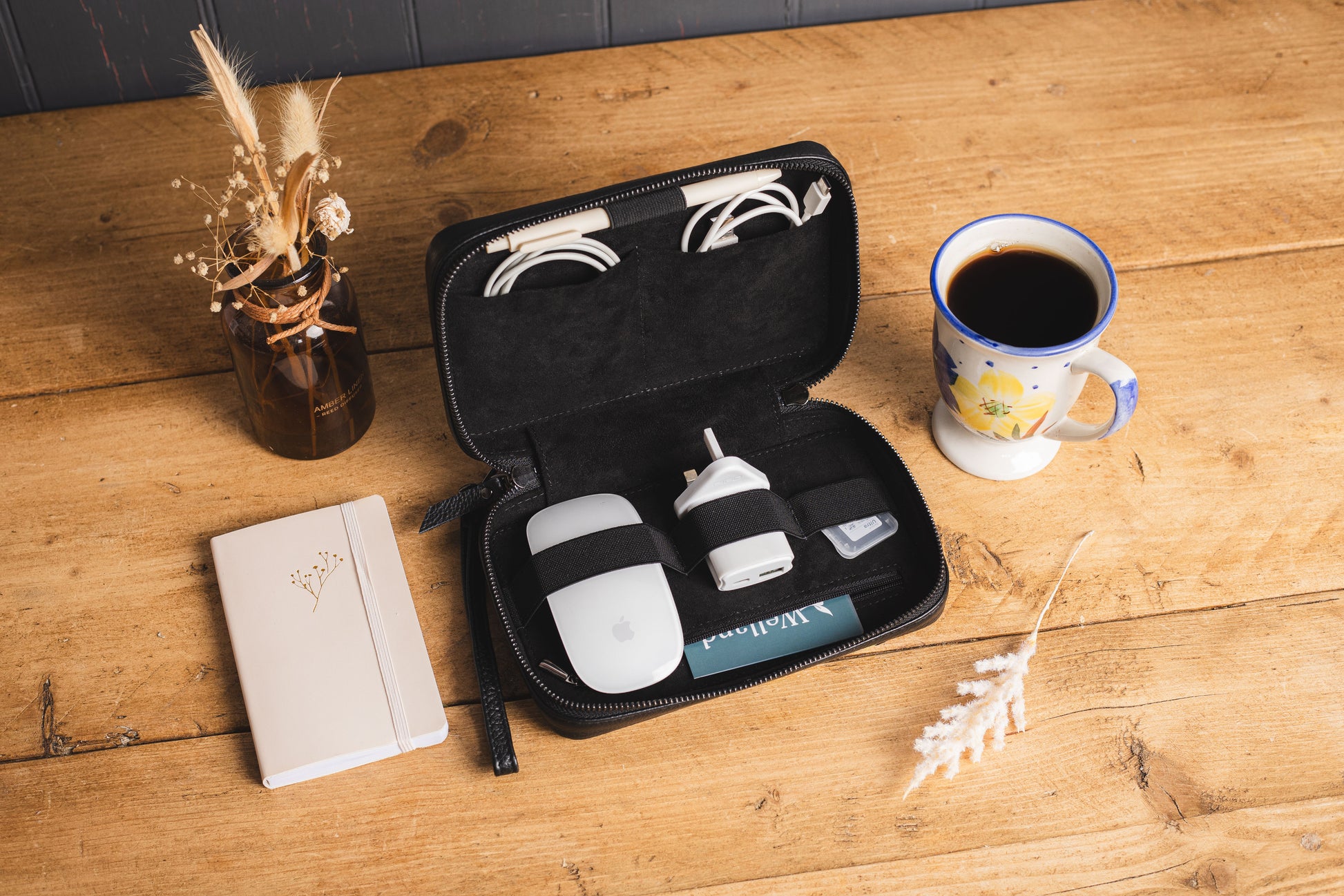 • Multiple compartments for organising tech cables, cards, and accessories.